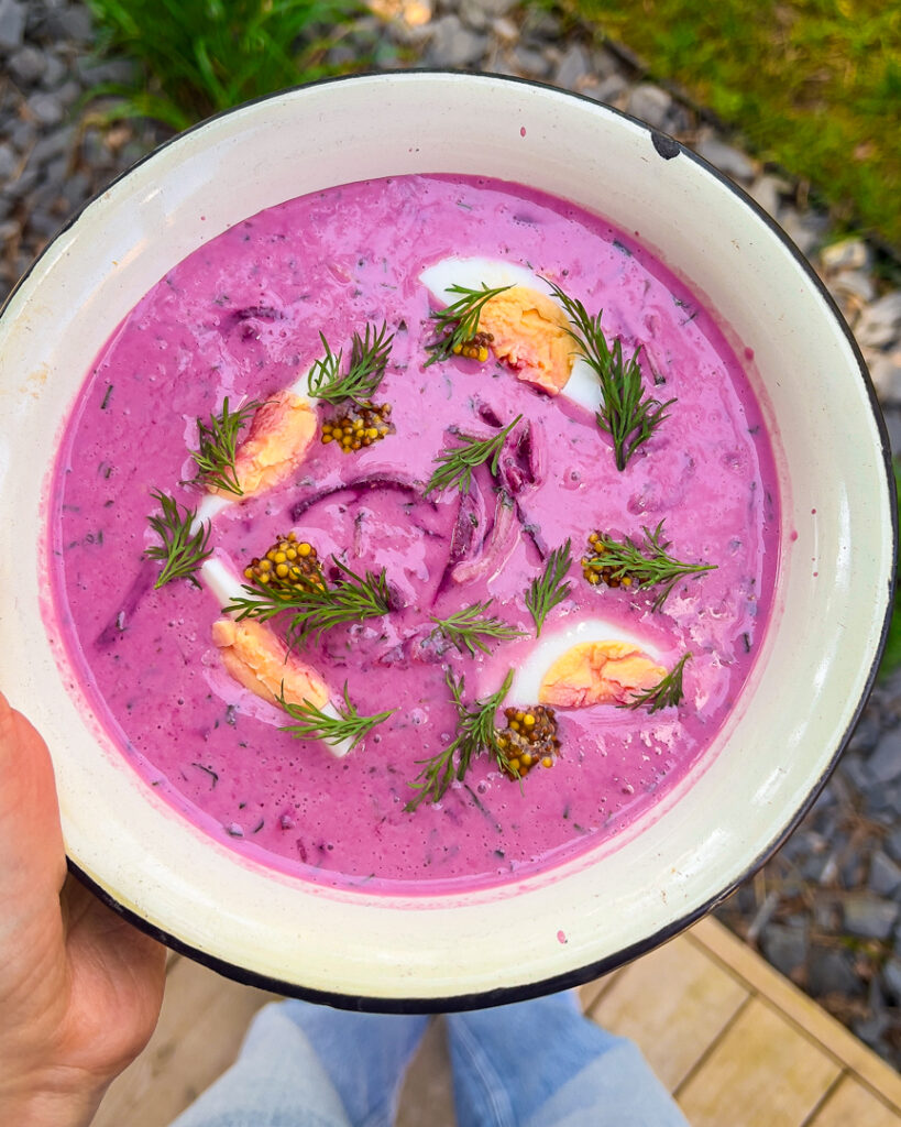 su keptomis bulvėmis, pagardintomis šviežiais krapais