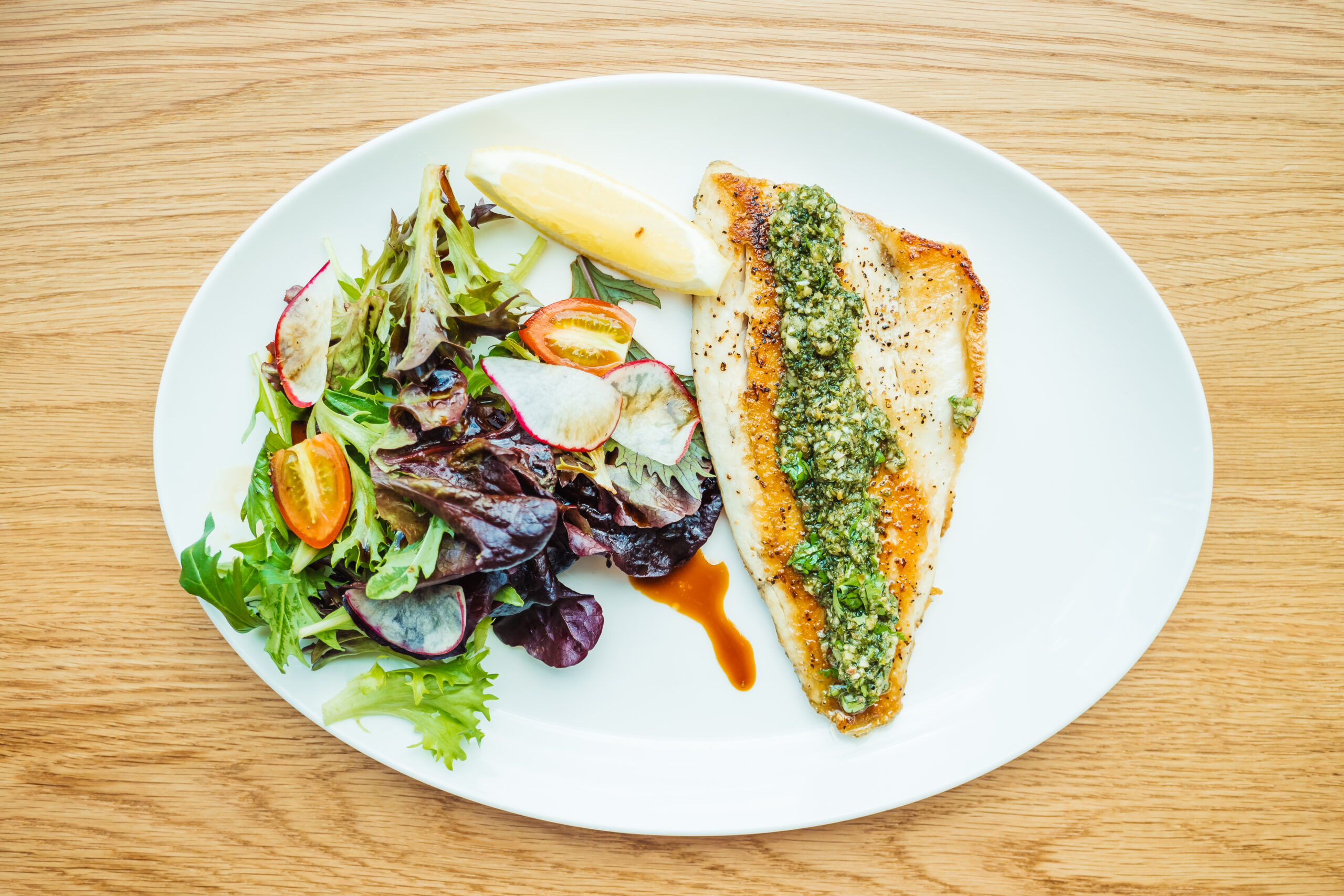 Garnyras: moliūgų-mango-garstyčių tyre, žalios daržovės.